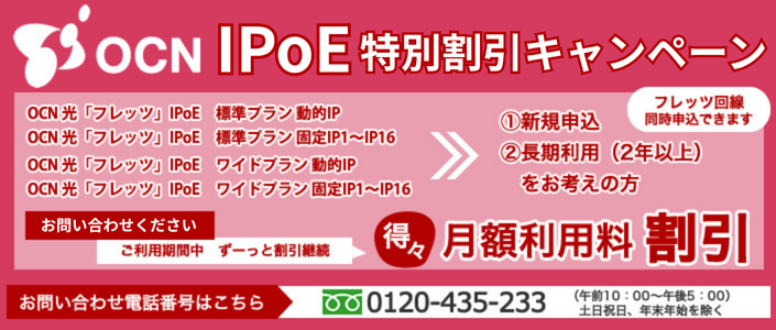 OCN固定IP1 | マンション/ マンションハイスピード タイプ | 7,480円 |